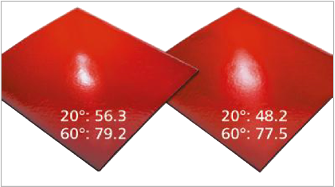 20。角測量的讀數(shù)能更清楚地 顯示這兩塊樣板之間光澤的 差異。