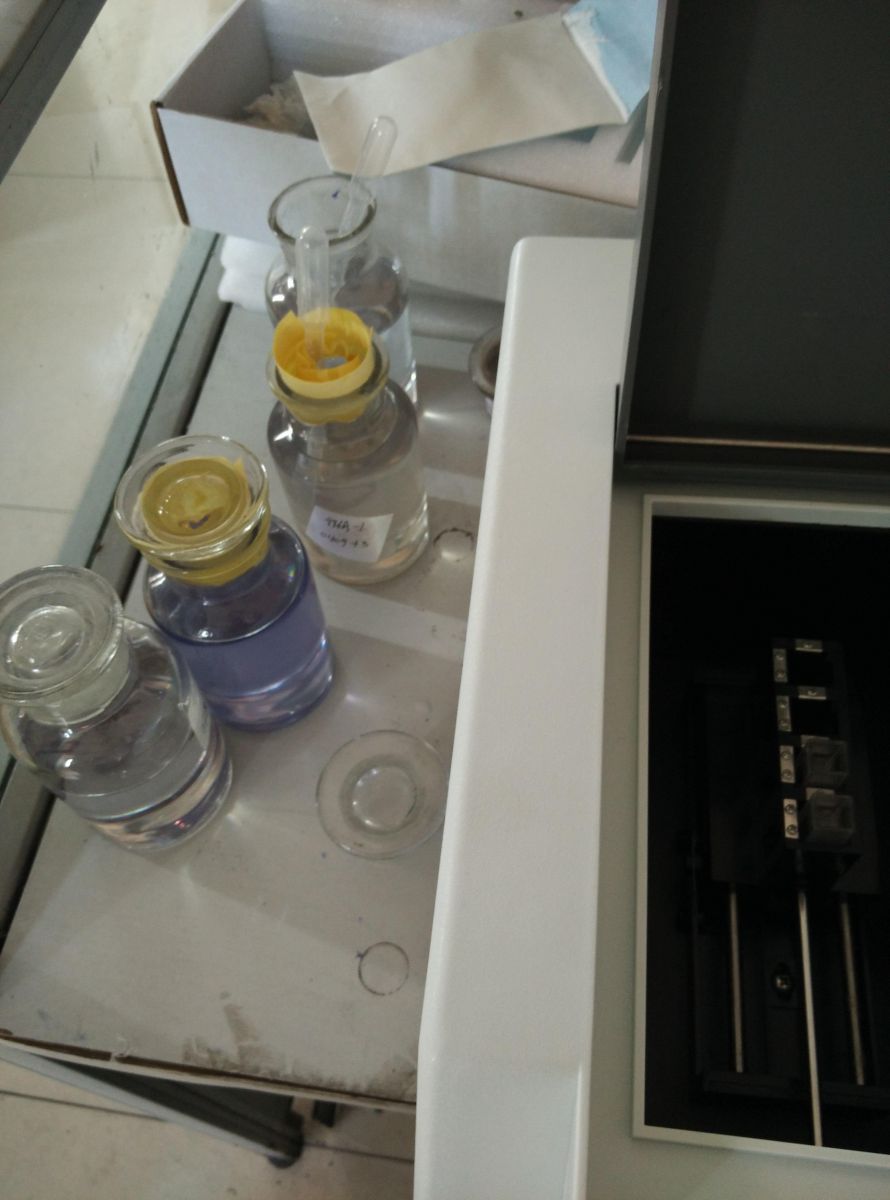 第三步:在標(biāo)樣測試完畢后,將標(biāo)樣從樣品室內(nèi)取出,再將試樣放入,開始測試(如圖6);